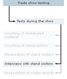 Verbal, written and computer-assisted interviews with the stand visitors. Interviews last approx. 5 to 20 minutes depending on subject and surroundings.